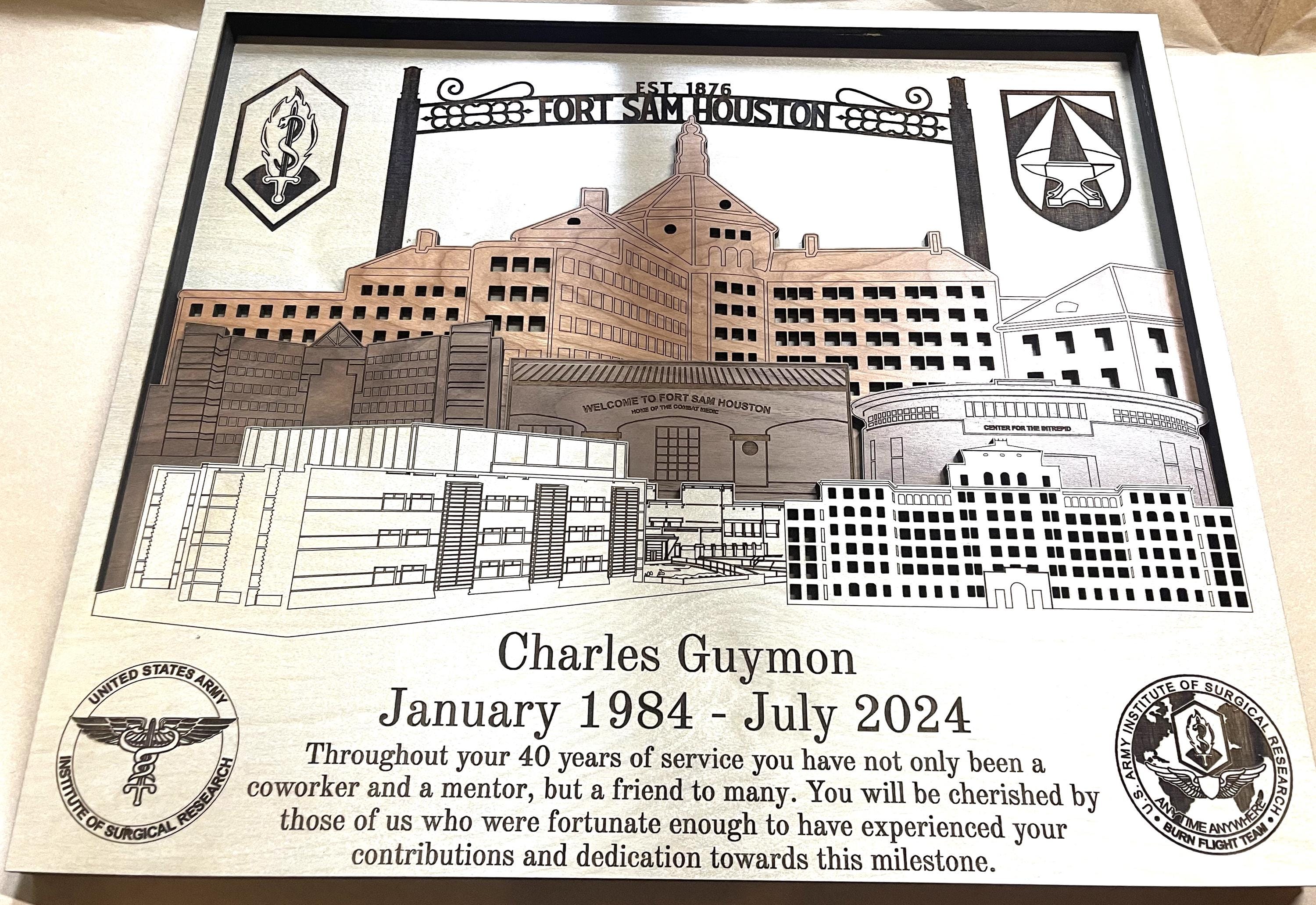 ✦ Product Name: Ft. Sam Houston 3-D Wood Plaque Army Navy Marines PCS Retirement Gift