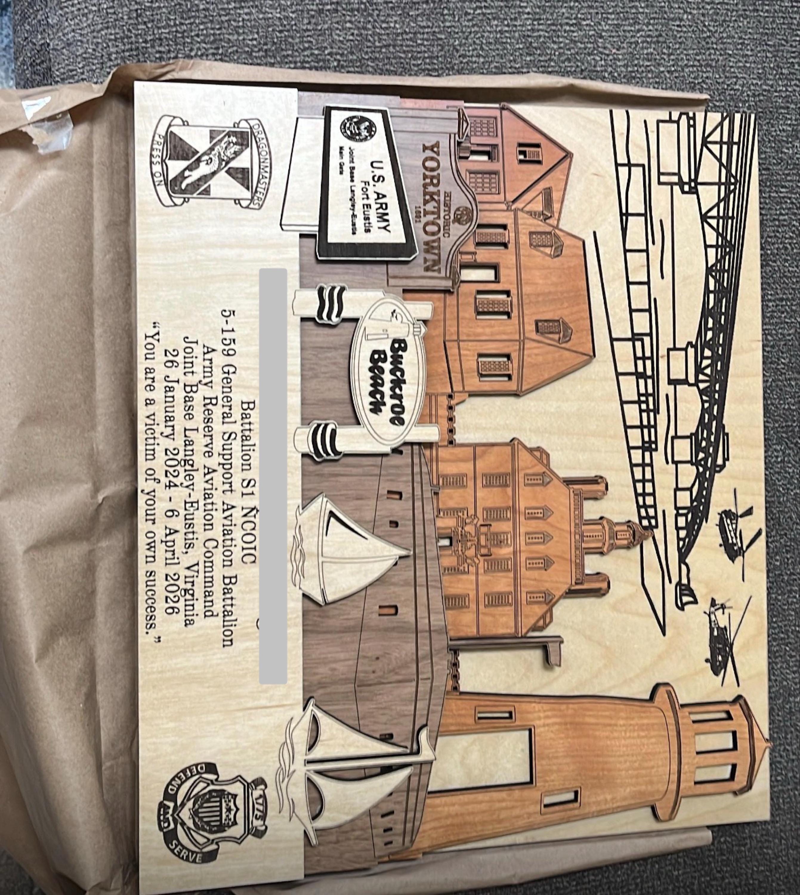 The item arrived on time and actually exceeded my expectations. The customer service was also excellent—very responsive, patient, and accommodating. I would definitely recommend them for any PCS or retirement gifts.