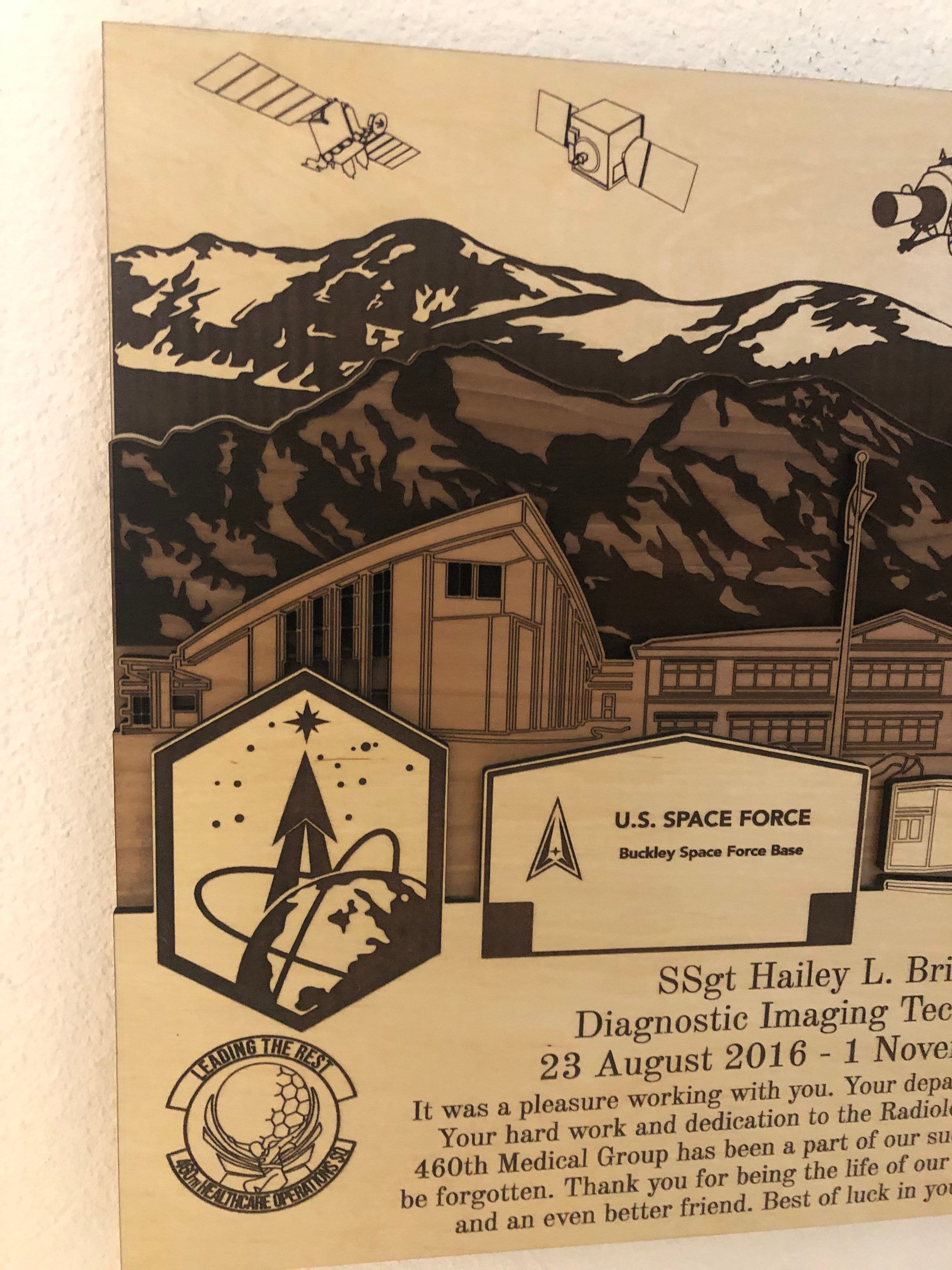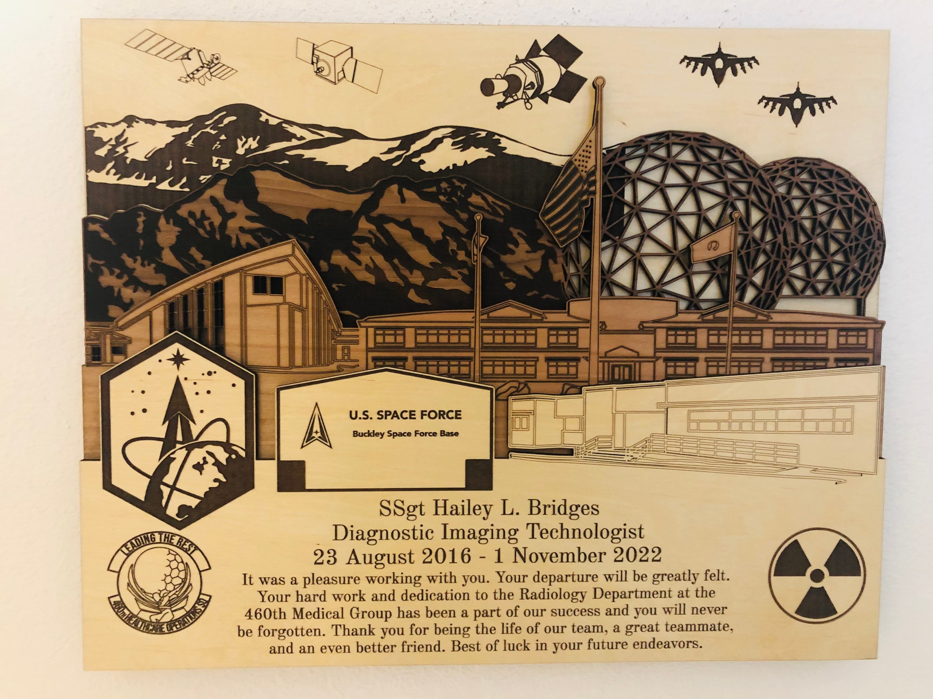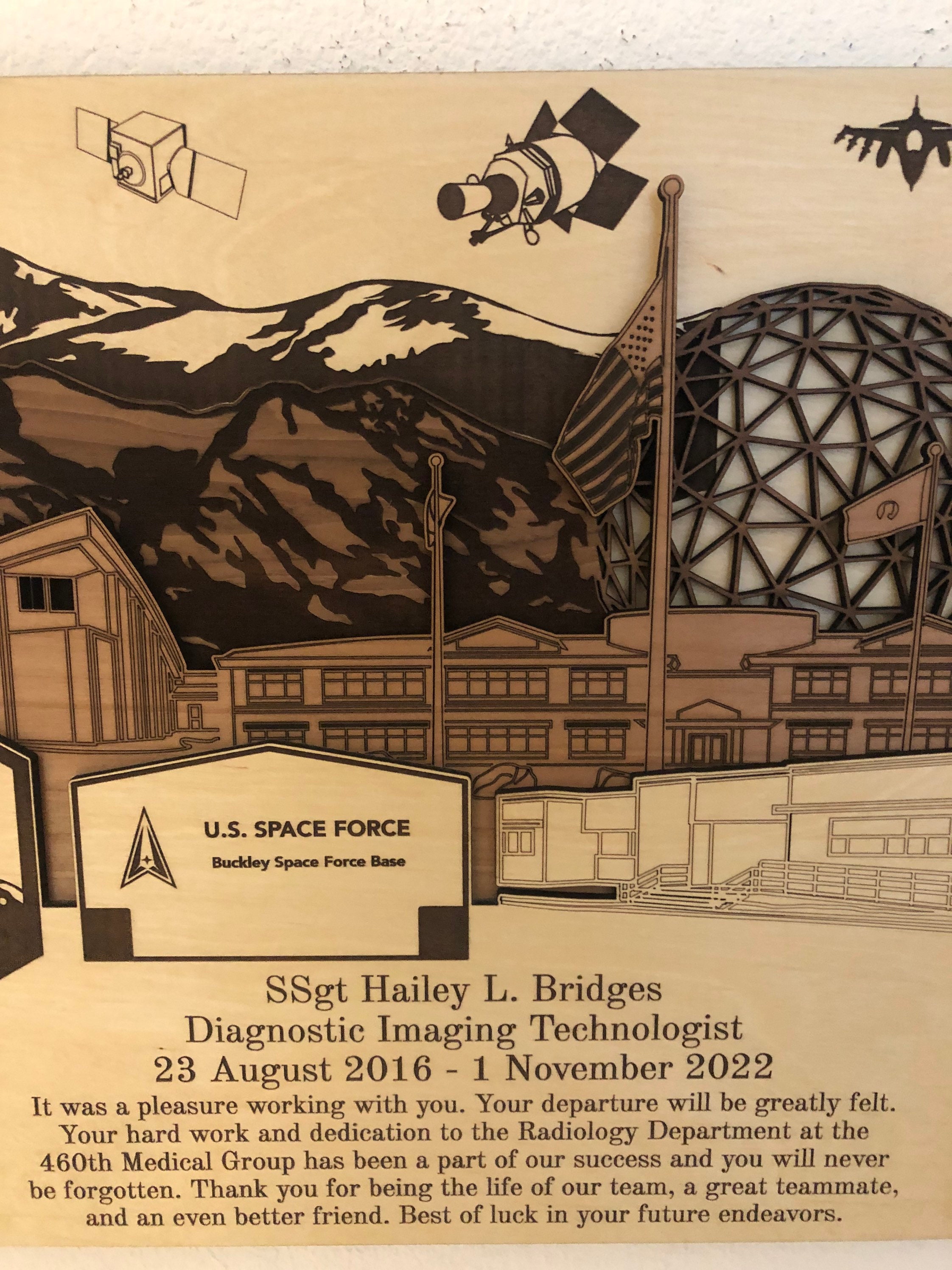 ✦ Product Name: Buckley Space Force Air Force 3D Wood Plaque PCS Retirement Gift.