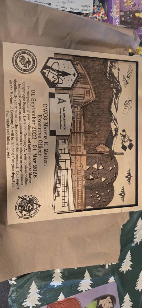 Absolutely a wonderful gift for a person retiring from the military. The pictures don’t give it justice. The plaque is multi dimensional (4-5 layers). Details and craftsmanship amazing. Would definitely use this seller again. Seller was very friendly flexible. Exceeded our delivery expectations.