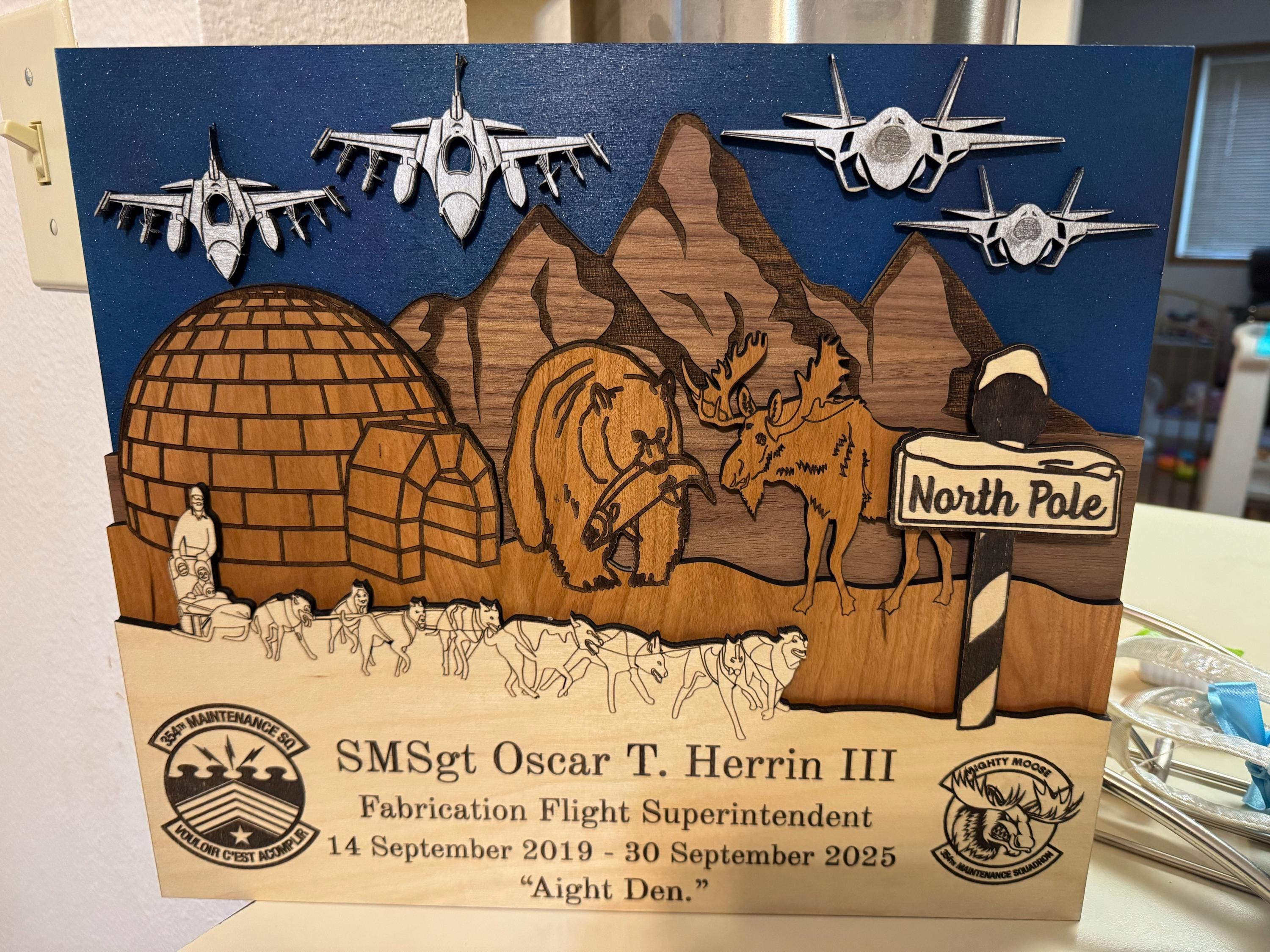 ✦ Product Name: Eielson AFB Alaska Air Force 3D Wood Plaque PCS Retirement Gift.