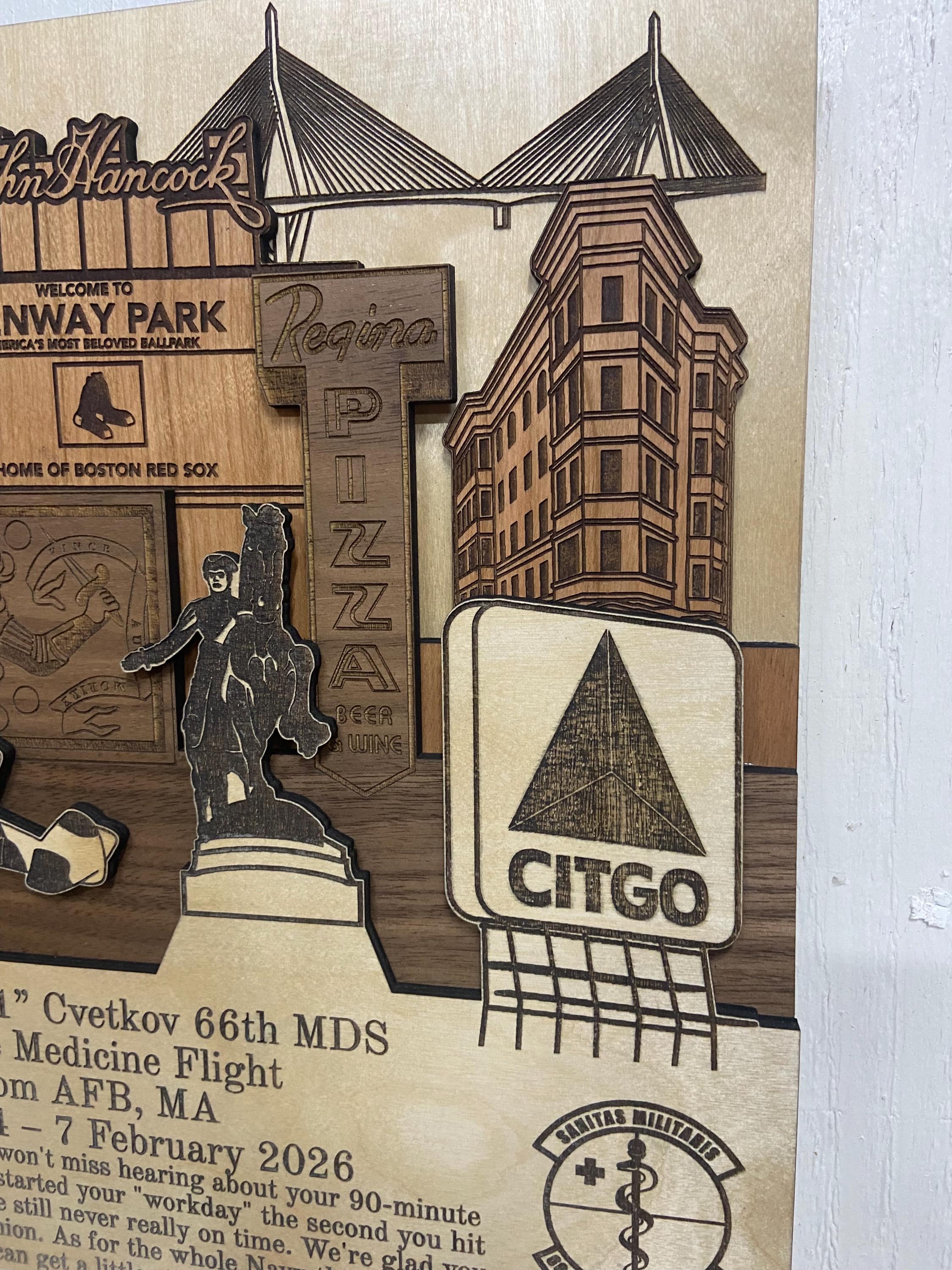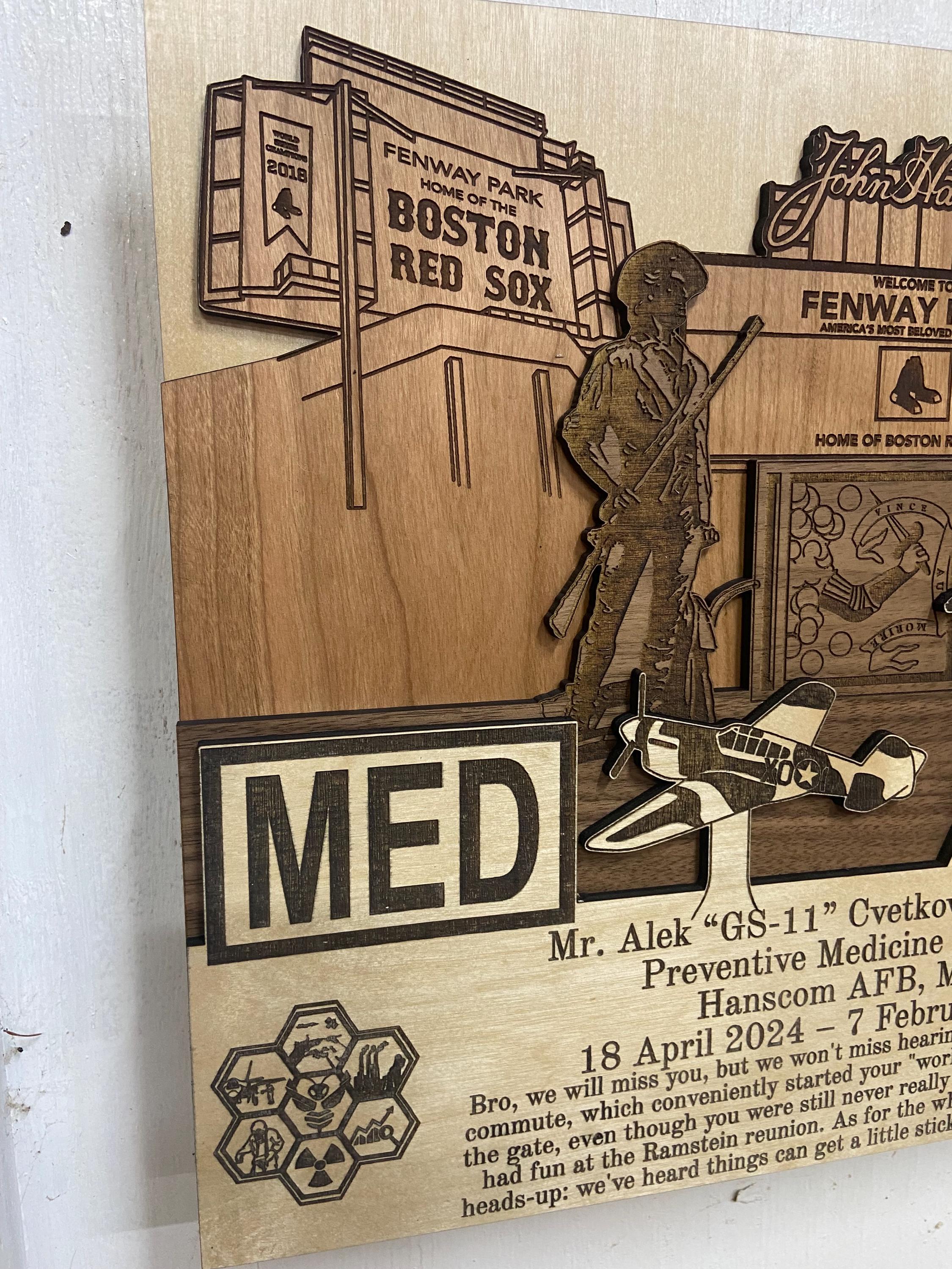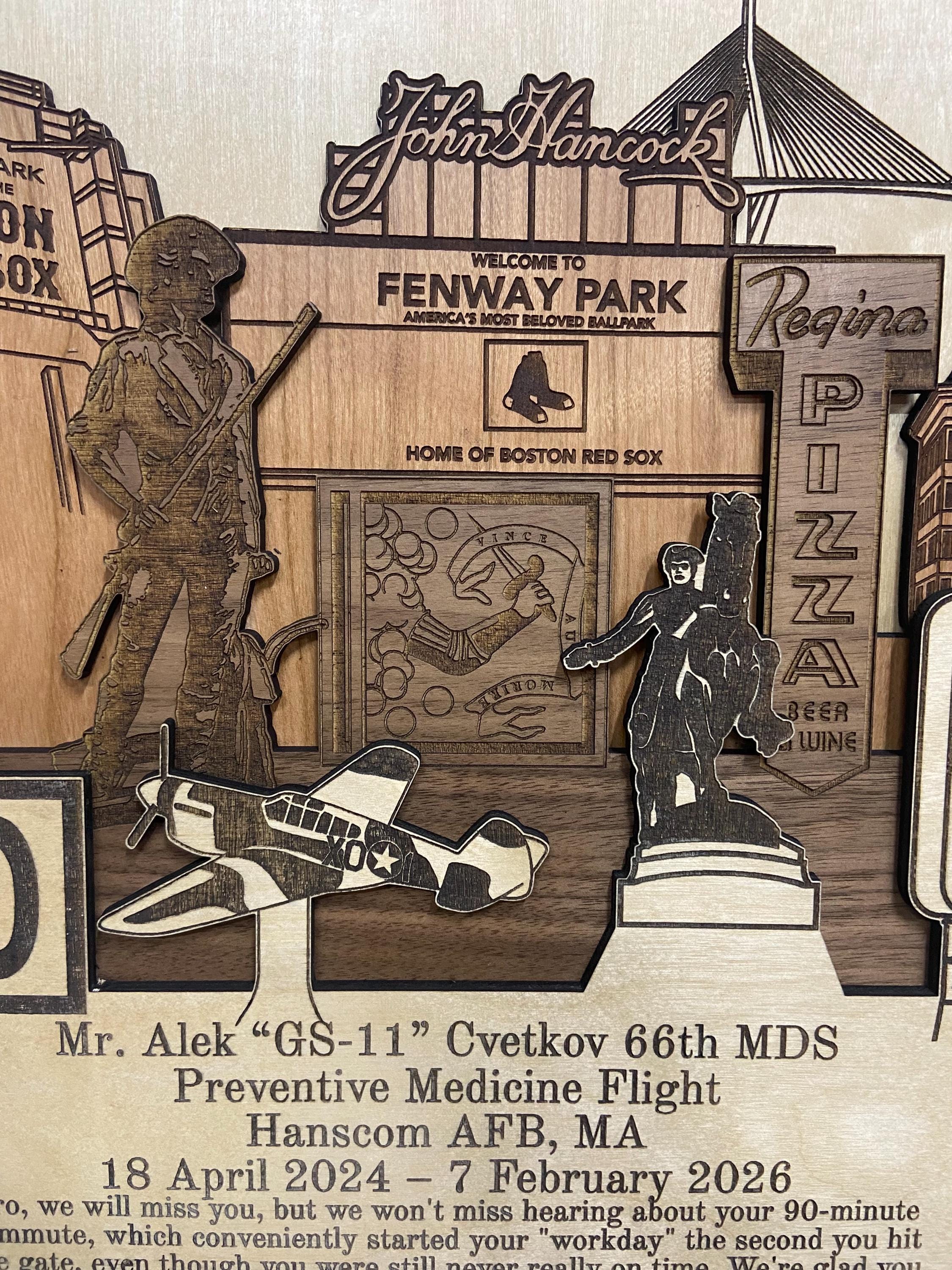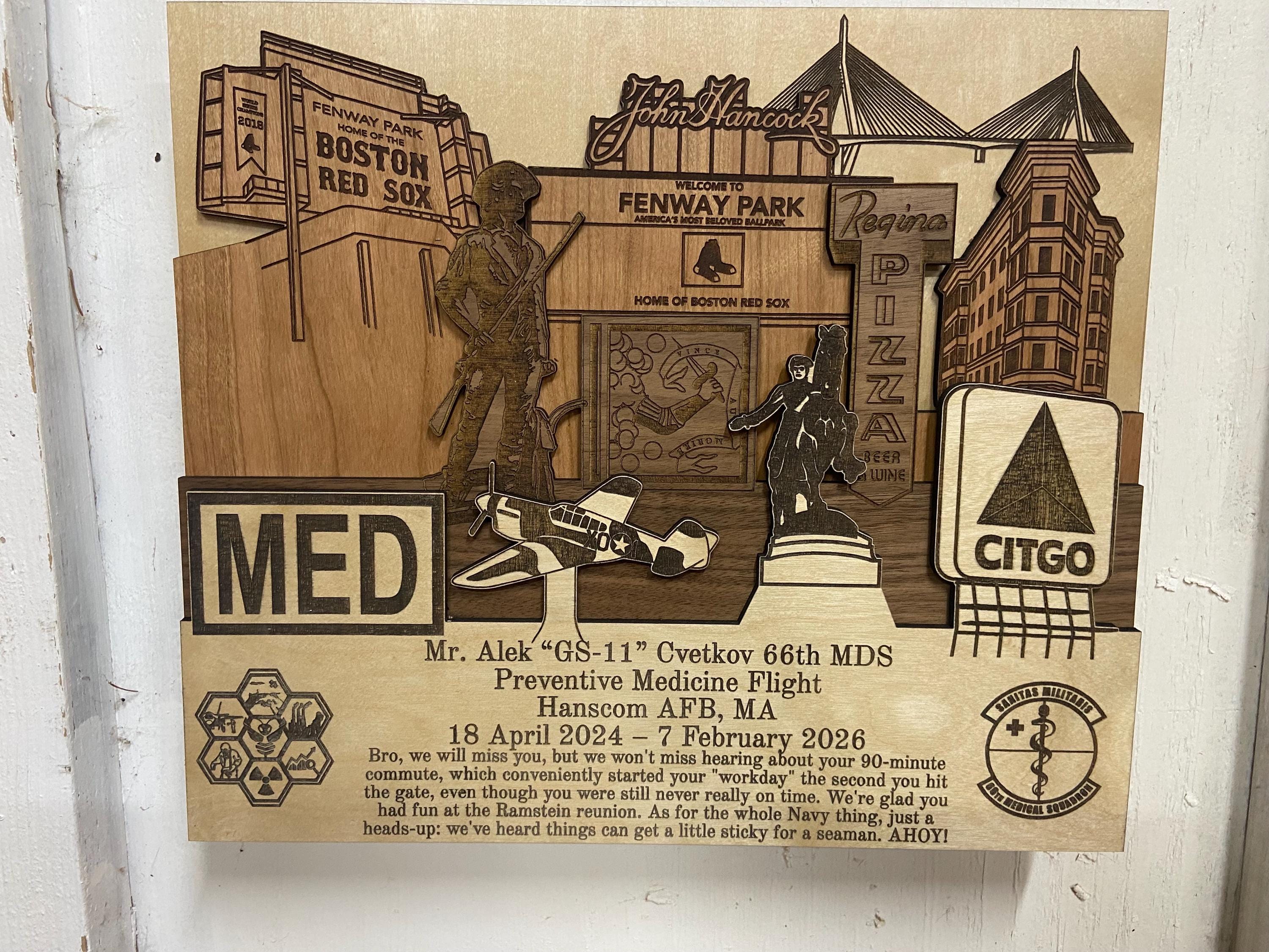 ✦ Product Name: Hanscom Air Force Base Massachusetts 3D Wood Plaque PCS Retirement Gift.
