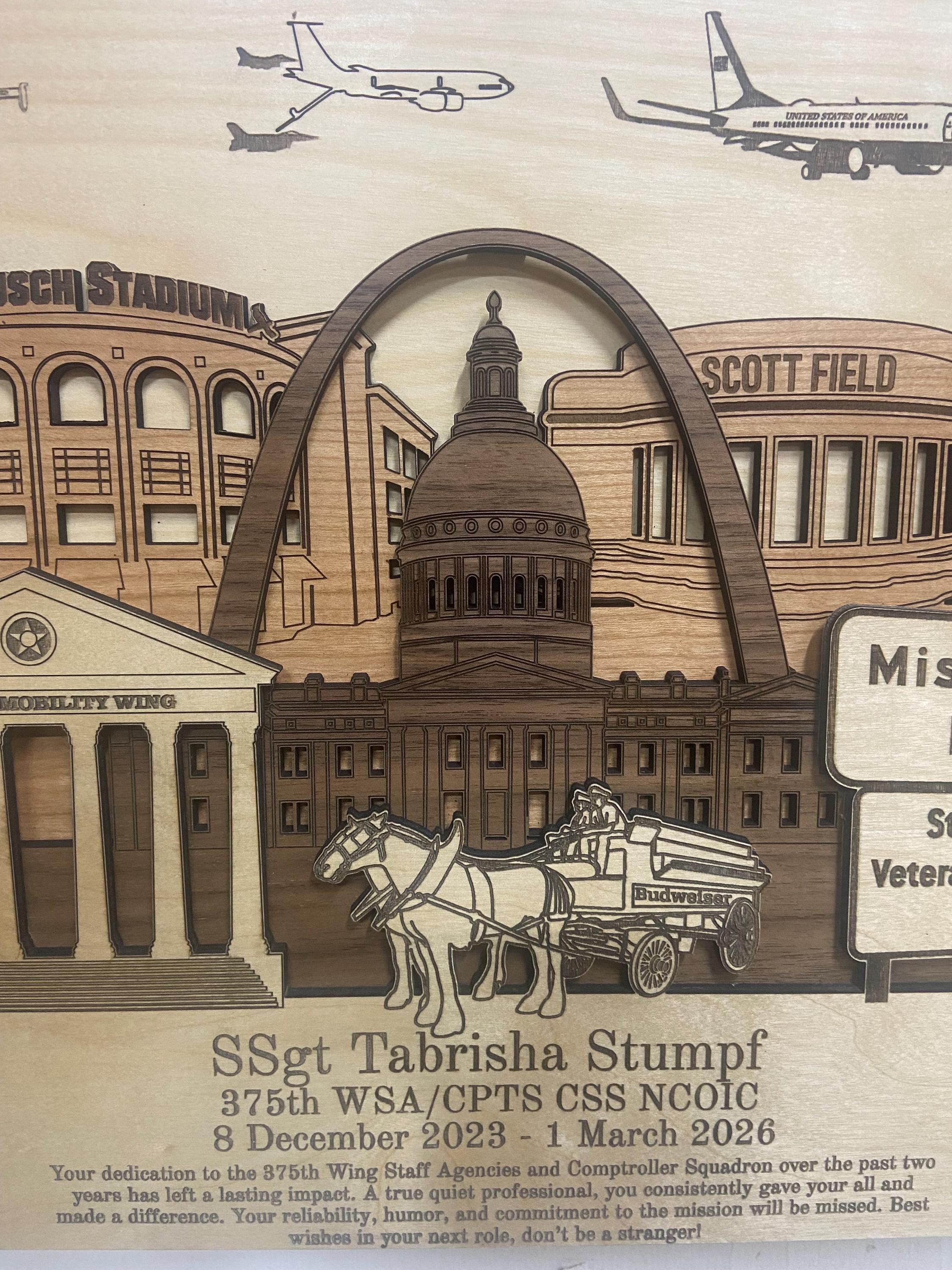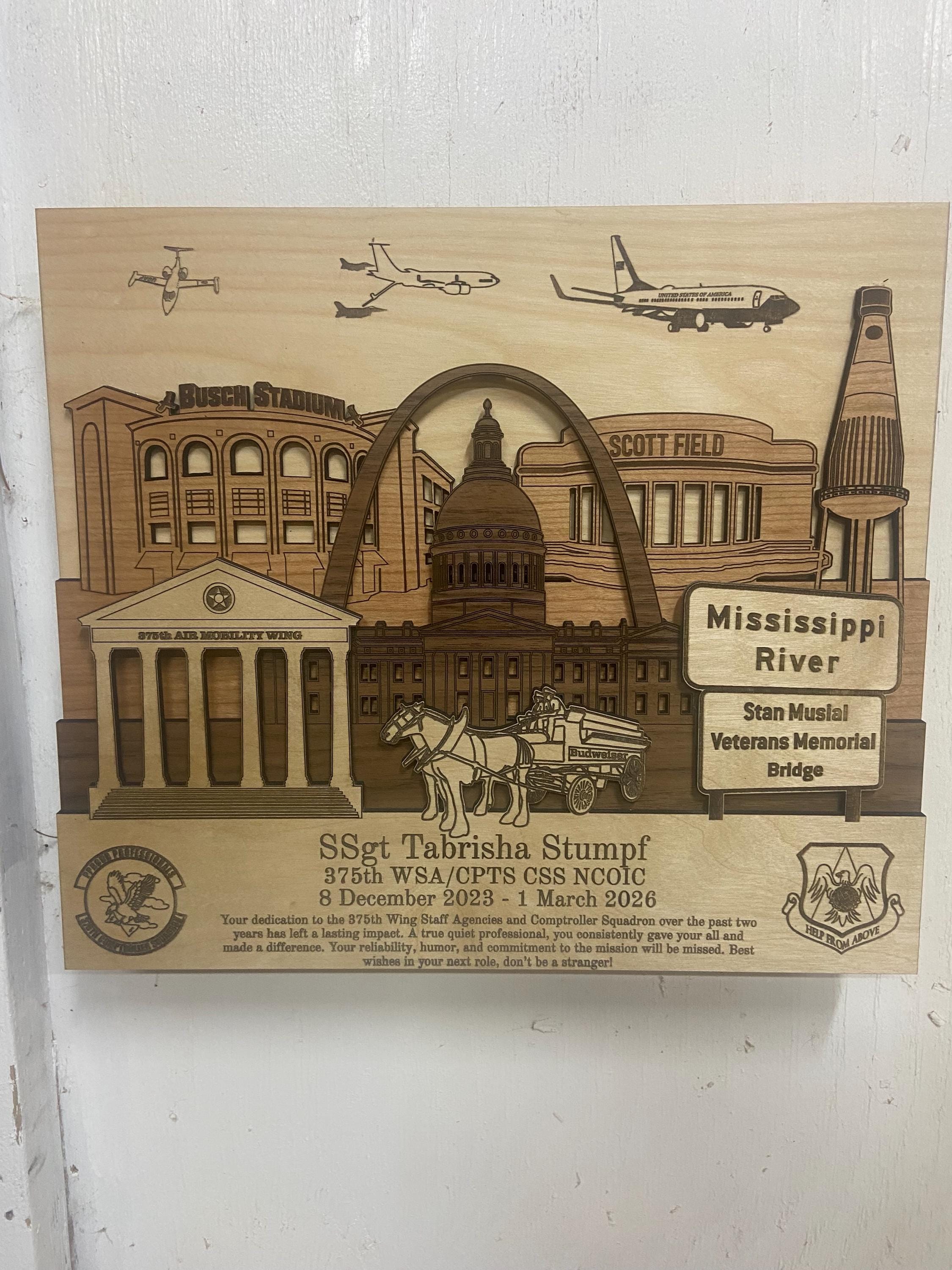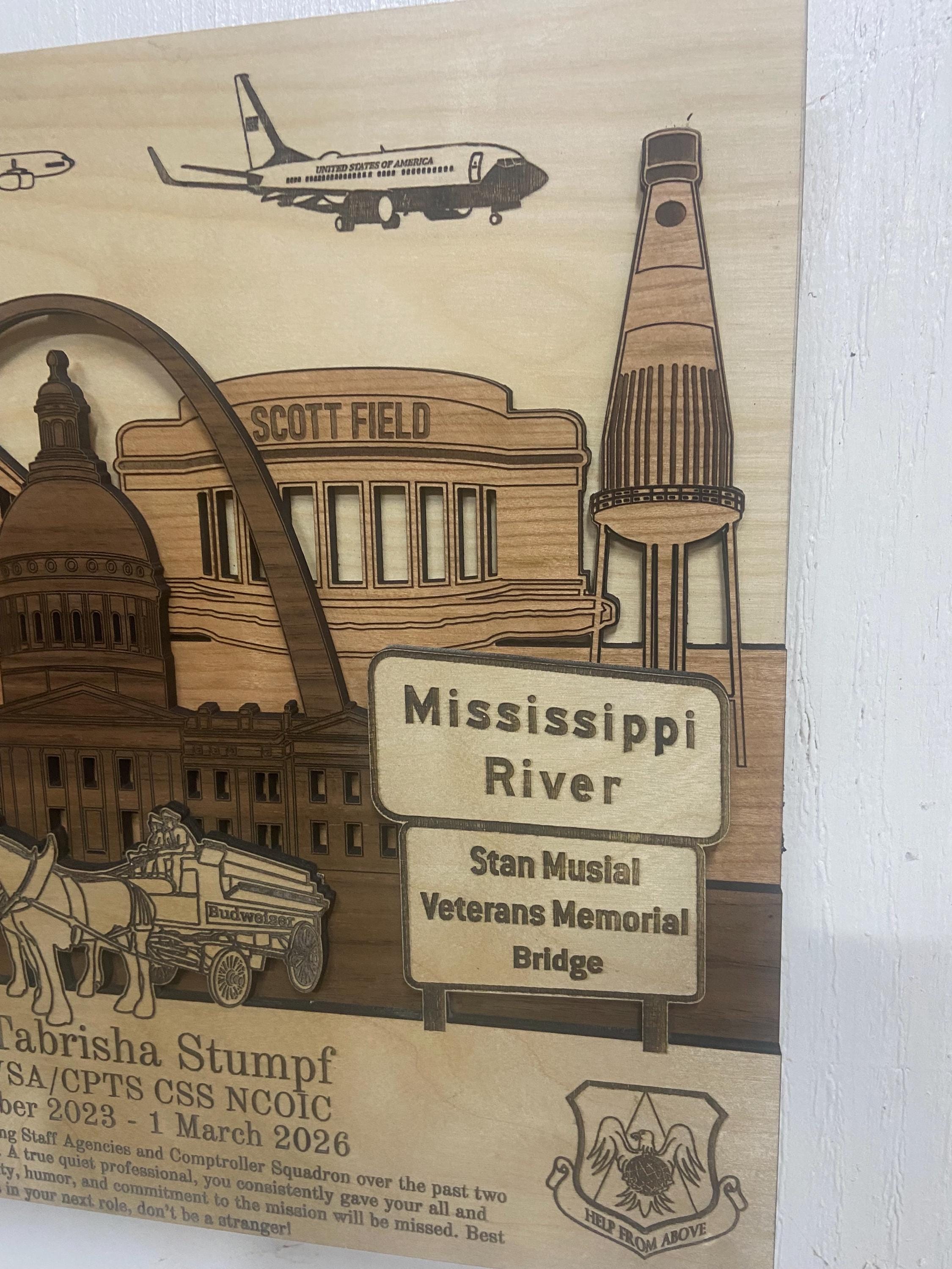 ✦ Product Name: Scott AFB 3-D Wood Plaque Army Navy Marines PCS Retirement Gift